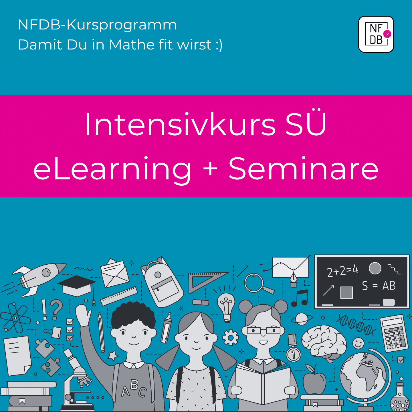 Unsere umfassende Vorbereitung unterstützt dich dabei optimal: Du lernst im eigenen Tempo mit drei NFDB-eLearning-Kursen (Mathe-Basics, Geometrie, Trigonometrie) und erarbeitest dir Analysis und Stochastik anhand detaillierter Skripte. Die Materialien bieten dir Grundlagen, Beispiele und Übungsaufgaben. In fünf intensiven Seminaren wiederholen wir zunächst die wichtigsten Themen, bevor wir gemeinsam SÜ-Originalaufgaben bearbeiten.