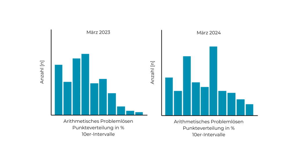 Viele haben Schwierigkeiten mit Mathe, was zu einer breiten Streuung der Ergebnisse führt. Langsames Rechnen führt zu wenigen gelösten Aufgaben, schnelles Rechnen erhöht die Fehlerquote. Wer kein Gespür für Zahlen hat, erkennt oft nicht, wie schwer eine Aufgabe ist. Gute Kopfrechner*innen können viele Antwortmöglichkeiten direkt ausschließen.