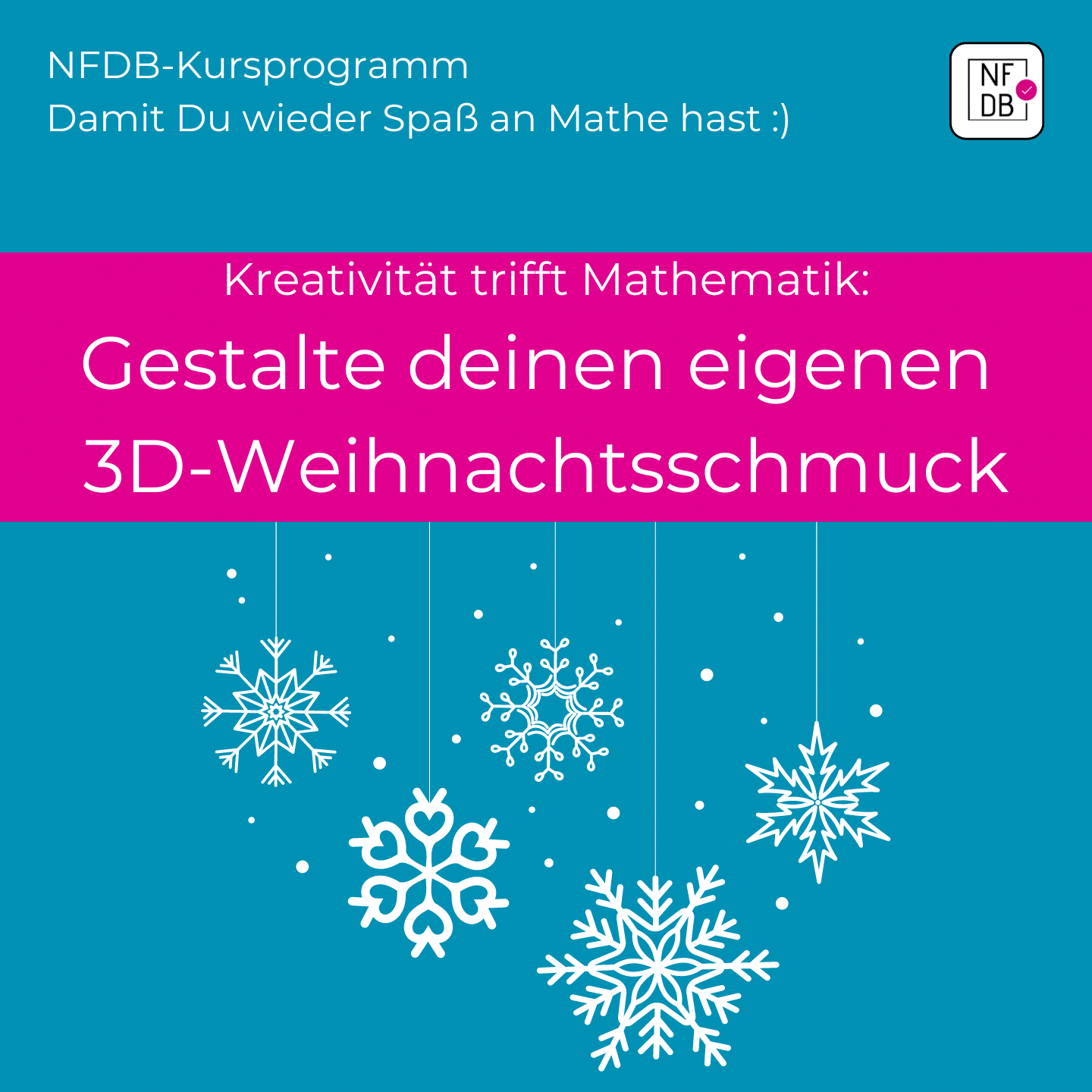 In diesem einzigartigen Kurs kombinierst du Mathematik und Kreativität, um deinen eigenen Weihnachtsschmuck von der ersten Skizze bis zum fertigen 3D-Modell zu gestalten. Du bestimmst selbst, wie komplex dein Design wird, und lernst dabei, ein komplettes Projekt von der Idee bis zum fertigen Produkt zu realisieren. Der Kurs richtet sich besonders an neurodiverse Schüler*innen, die in der klassischen Schulmathematik wenig Anreiz finden und stattdessen an spannenden, kreativen Aufgaben arbeiten möchten.