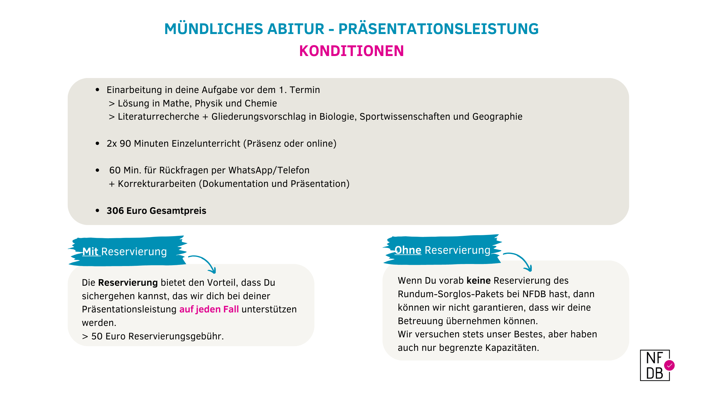 Reservierung 2025: Mündliches Abitur – Präsentationsleistung-Package, Gesamtpreis 306 Euro | NFDB