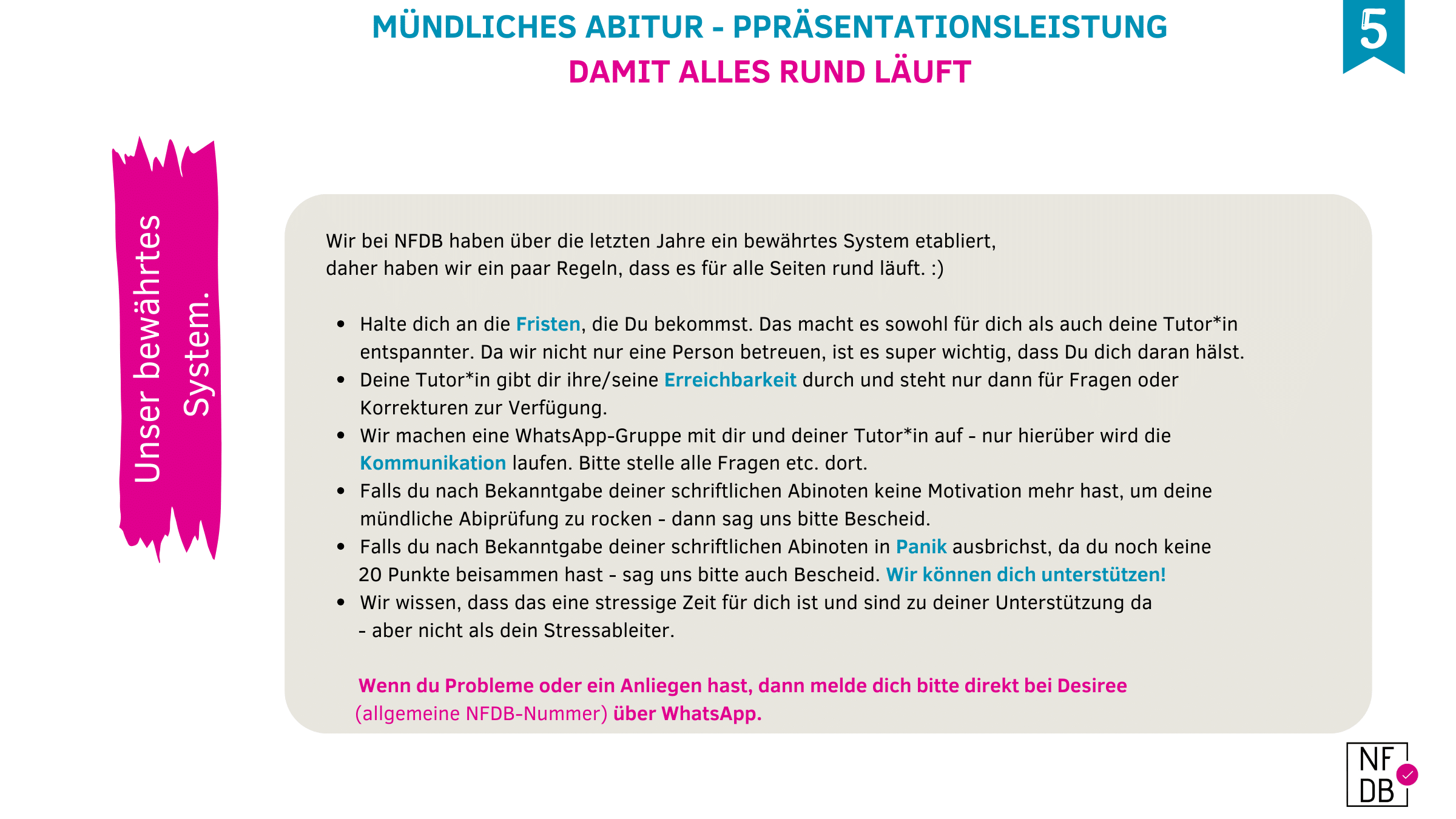 Schick deine Aufgabe am besten als Foto per WhatsApp an 0151/ 1937351 oder per Mail an kontakt@nfdb.info